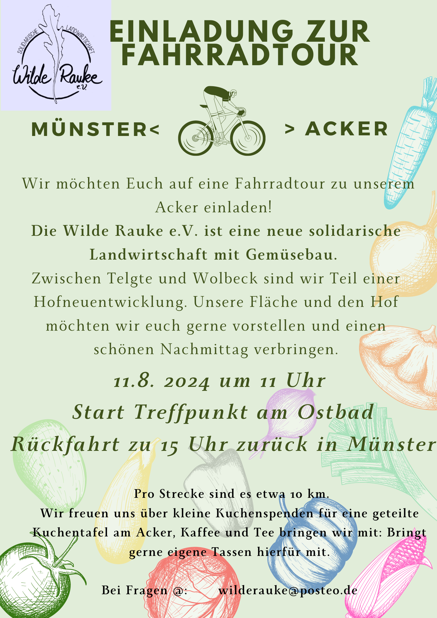 Die Wilde Rauke freut sich sehr über die Wilden Neuigkeiten: Ab 2025 werden wir zwischen Wolbeck und Telgte mit auf einem Hof Gemüse anbauen. Hier geht´s zu unserem Acker!