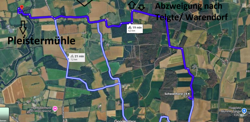 - Hinter der Werse biegt ihr rechts ab Richtung Telgte/ Warendorf.